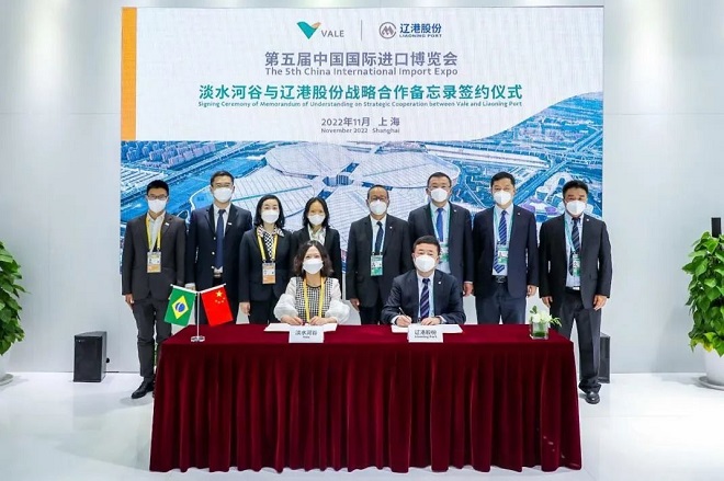 11月7日下午,在上海舉行的第五屆中國國際進口博覽會上,淡水河穀與大連港運營方遼寧港口股份有限公司(以下簡稱遼港股份)簽署戰略合作備忘錄,以期深化在大連港礦石碼頭的業務合作。