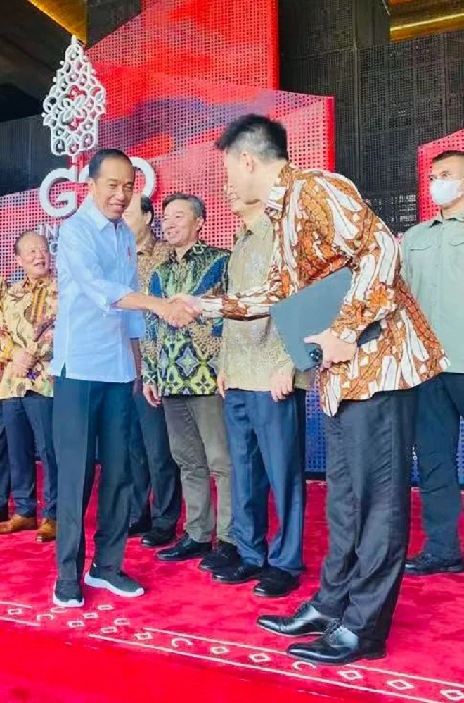 11月17日上午,印尼總統佐科在巴厘島G20峰會上接見了青山實業董事局主席項光達、德龍鋼鐵集團董事長丁立國、振石控股集團董事局主席張毓強、印尼德龍鎳業董事長朱明冬、華友鈷業董事長陳雪華等中國企業家。