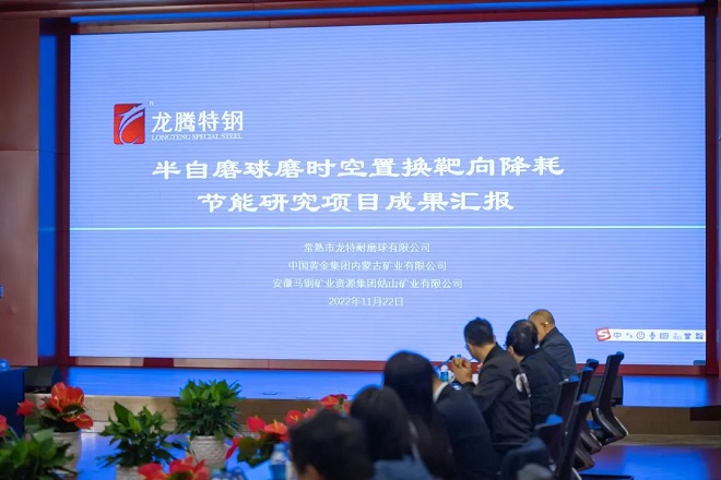 11月22日,中國冶金礦山企業協會和江蘇省工信廳在龍騰特鋼共同主持召開“LT耐磨鋼球與半自磨/球磨時空置換靶向降耗節能研究成果評價會”,中國工程院院士王運敏、中國冶金礦山企業協會總工程師雷平喜、江蘇省工信廳技術創新處副處長黃海勇、龍騰特鋼董事長季丙元、龍特耐磨球總裁徐勝及來自全國礦山行業的相關專家參加會議。