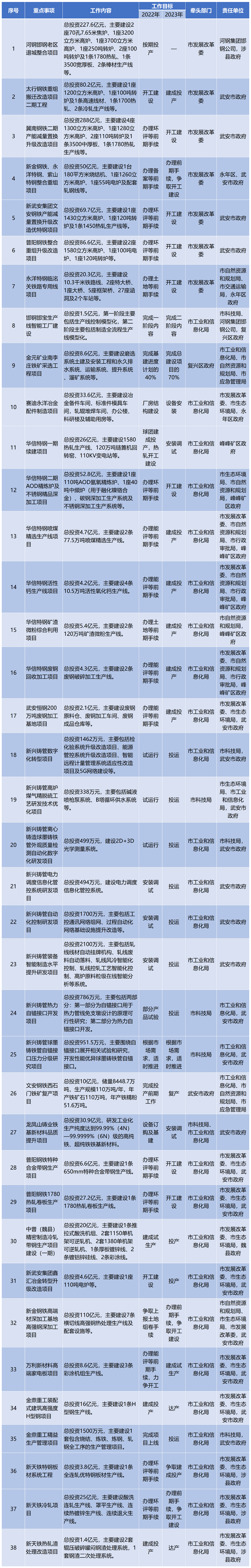 邯鄲市加快推進鋼鐵行業高質量發展工作任務分解表
