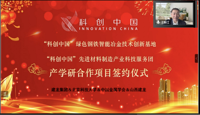 2022年11月19日上午,“科創中國”先進材料製造產業科技服務團助力科技成果轉化落地暨山西建龍集團、北京科技大學產學研融合項目簽約儀式以線上線下結合的方式舉行。“科創中國”山西掛點組副組長、中zhong國guo科ke協xie辦ban公gong廳ting財cai務wu資zi產chan處chu處chu長chang周zhou峰feng,中zhong國guo金jin屬shu學xue會hui副fu理li事shi長chang兼jian秘mi書shu長chang王wang新xin江jiang,北bei京jing科ke技ji大da學xue工gong程cheng技ji術shu研yan究jiu院yuan副fu院yuan長chang邵shao健jian,建jian龍long集ji團tuan戰zhan略lve與yu品pin種zhong開kai發fa部bu副fu部bu長chang陳chen克ke勤qin,山shan西xi建jian龍long副fu總zong經jing理li劉liu西xi峰feng,運yun城cheng市shi科ke協xie黨dang組zu成cheng員yuan閆yan昌chang發fa等deng領ling導dao、企業科技人員參加了簽約儀式。
