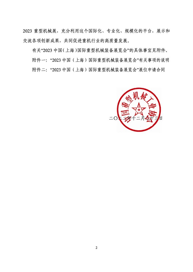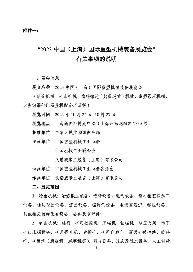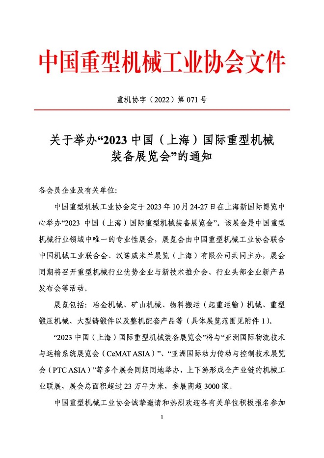 關於舉辦“2023中國(上海)國際重型機械裝備展覽會”的通知
