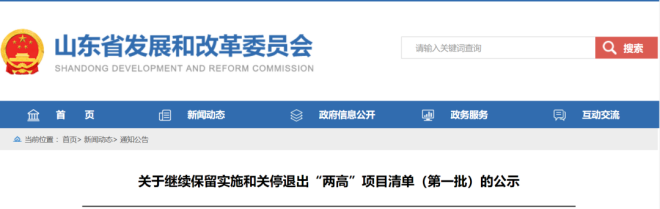 依據《山東省人民政府辦公廳關於印發堅決遏製“兩高”項目盲目發展的若幹措施的通知》(魯政辦字〔2021〕98號)有關規定,經過省市縣三級聯合審查,並經企業確認,山東省發展和改革委員會對第一批可以繼續保留實施的“兩高”項目和關停退出的“兩高”項目進行公示,其中,11個鋼鐵項目涉及“兩高”或被關停退出。
