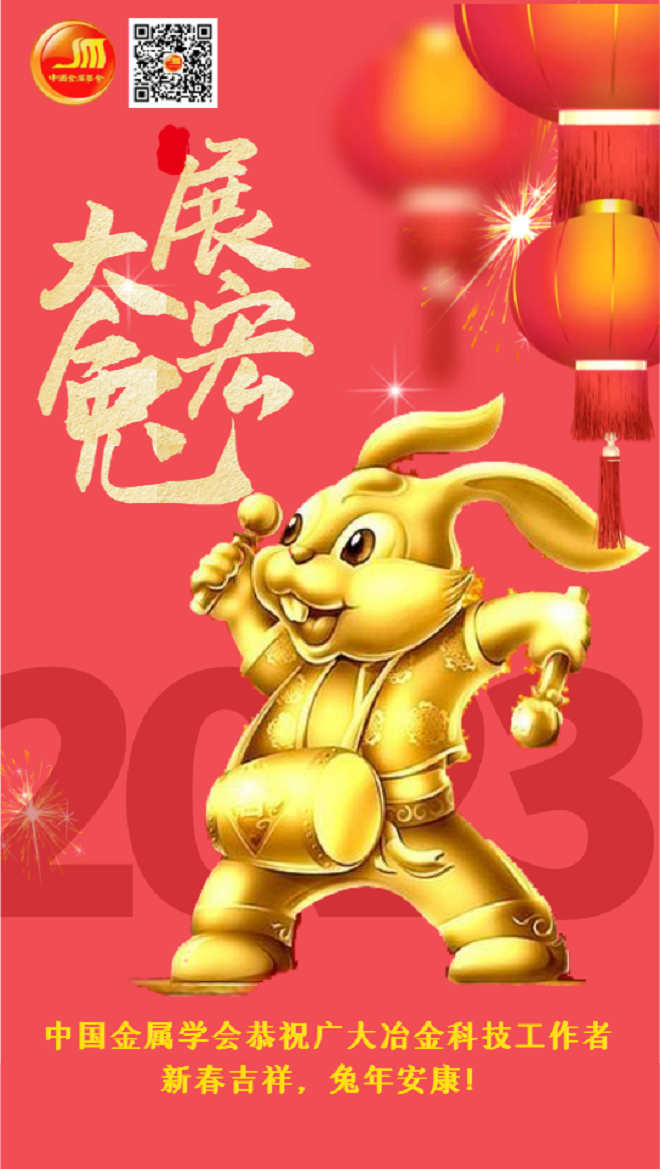 春叩千門傳佳訊,神州萬裏展新顏。值此新春腳步臨近之際,中國金屬學會向廣大會員單位、個人會員、奮鬥在冶金事業一線的科技工作者拜年!衷心祝福大家新春快樂、兔年大吉!