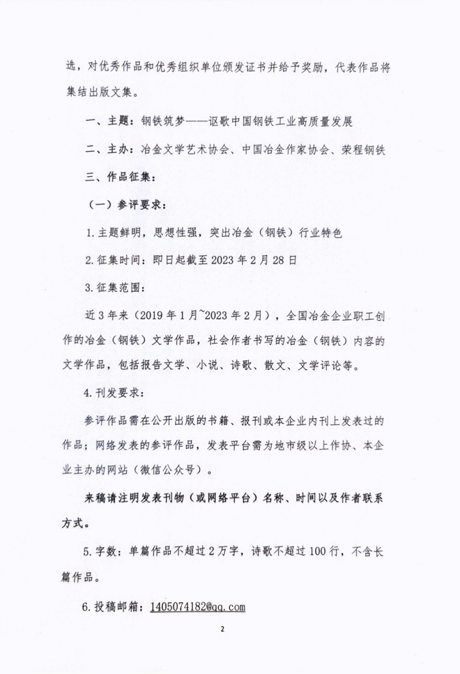 “鋼鐵築夢——榮鋼杯·中國冶金文學優秀作品主題征文”活動通知