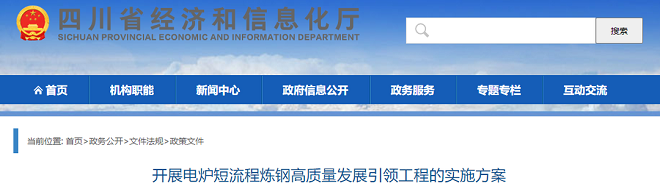 近日,四川省經濟和信息化廳網站發布了《開展電爐短流程煉鋼高質量發展引領工程的實施方案》(以下簡稱《方案》)。