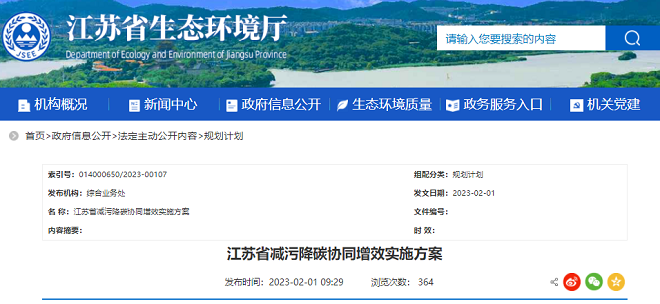 近日,江蘇省生態環境廳網站發布了《江蘇省減汙降碳協同增效實施方案》(以下簡稱《方案》)。