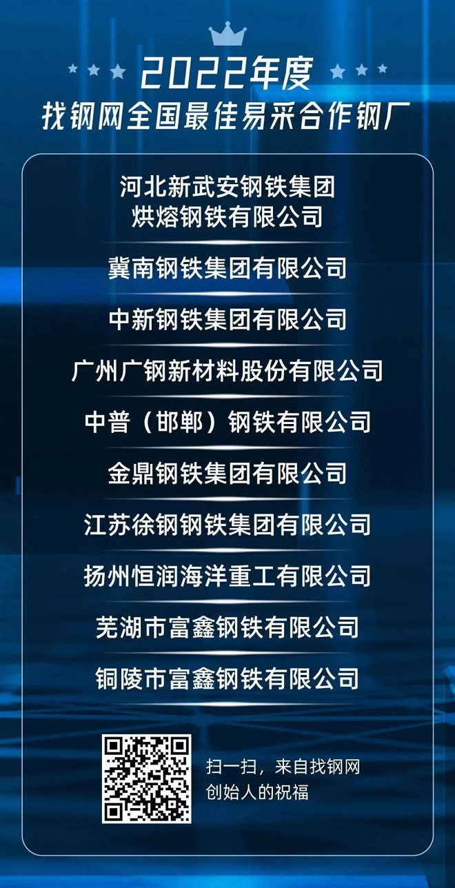 入選找鋼網年度最佳合作鋼廠的企業,意味著企業在質量、產品、服務等各方麵獲得了找鋼網平台用戶的認可。