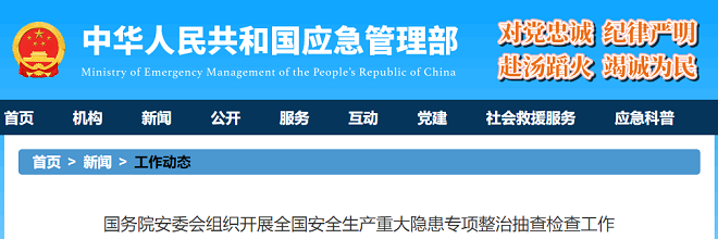 國務院安委會組織開展全國安全生產重大隱患專項整治抽查檢查工作