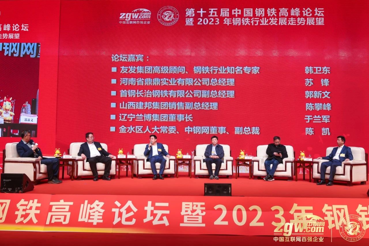 主(zhu)題(ti)發(fa)言(yan)結(jie)束(shu)後(hou),還(hai)舉(ju)行(xing)了(le)圓(yuan)桌(zhuo)論(lun)壇(tan)。韓(han)衛(wei)東(dong)主(zhu)持(chi)論(lun)壇(tan),河(he)南(nan)省(sheng)鼎(ding)鼎(ding)實(shi)業(ye)有(you)限(xian)公(gong)司(si)總(zong)經(jing)理(li)蘇(su)鋒(feng),首(shou)鋼(gang)長(chang)治(zhi)鋼(gang)鐵(tie)有(you)限(xian)公(gong)司(si)副(fu)總(zong)經(jing)理(li)郭(guo)新(xin)文(wen),山(shan)西(xi)建(jian)邦(bang)集(ji)團(tuan)銷(xiao)售(shou)副(fu)總(zong)經(jing)理(li)陳(chen)攀(pan)峰(feng),遼(liao)寧(ning)蘭(lan)博(bo)集(ji)團(tuan)董(dong)事(shi)長(chang)於(yu)蘭(lan)軍(jun),中(zhong)鋼(gang)網(wang)副(fu)總(zong)裁(cai)陳(chen)凱(kai)圍(wei)繞(rao)著(zhe)“2023年行業發展趨勢及鋼市行情展望”進行了深入探討。