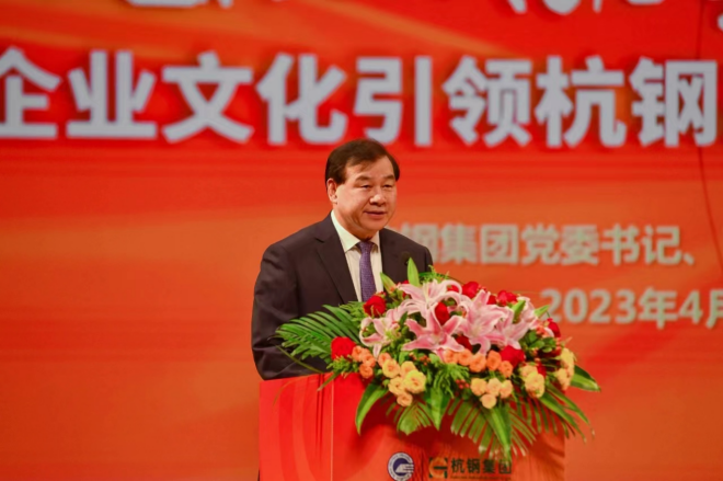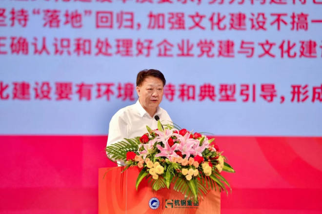 中國企業聯合會、中國企業家協會黨委委員、副理事長劉鵬,國務院國資委行業協會商會黨建工作局原局長張濤,浙江省國資委黨委書記、主任董貴波,浙江省企業聯合會、浙江省企業家協會常務副會長兼秘書長鄭一方分別致辭;杭鋼集團黨委書記、董事長張利明作杭鋼企業文化成果報告;北京大學原副校長、教授、博導張國有作點評。會議由中國企業聯合會企業文化工作委員會秘書長王建軍主持。浙江省人大常委會委員、省殘聯黨組書記、理事長蔡國春,浙江省政府原副秘書長李雲林,浙江省文投集團黨委書記、董事長林亮,杭鋼集團黨委副書記、總經理章建成等出席會議。
