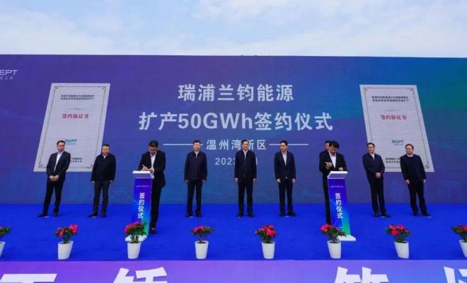 3月1日,投資超50億元的瑞浦蘭鈞能源股份有限公司50GWh新能源製造基地(三期)開工暨擴產50GWh簽約儀式在溫州舉行;據了解,瑞浦蘭鈞已建成一期、二期總產能為26GWh的動力與儲能鋰電池及係統項目,當前開工的(三期)項目規劃產能為24GWh鋰電池及係統、部分上遊配套部件。