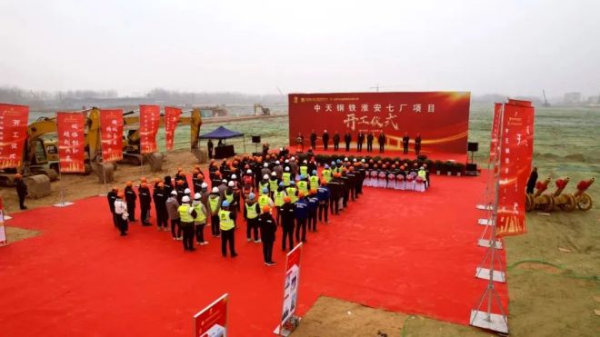 2月8日上午,中天淮安項目七廠與行政辦公區正式開工。中天鋼鐵150萬噸超高強精品鋼簾線項目(以下簡稱中天淮安項目),專注於ST(超高強度)和UT(特高強度)鋼簾線的生產,主導國內外高端產品市場,計劃總投資202億元,占地麵積2802畝,於2022年1月開工建設。目前一廠已經竣工,部分設備試產,11月將全麵達產。內河碼頭和七廠已經開工建設,二廠、六廠和智能裝備中心,分別於今年4月、7月、10月份開工建設。