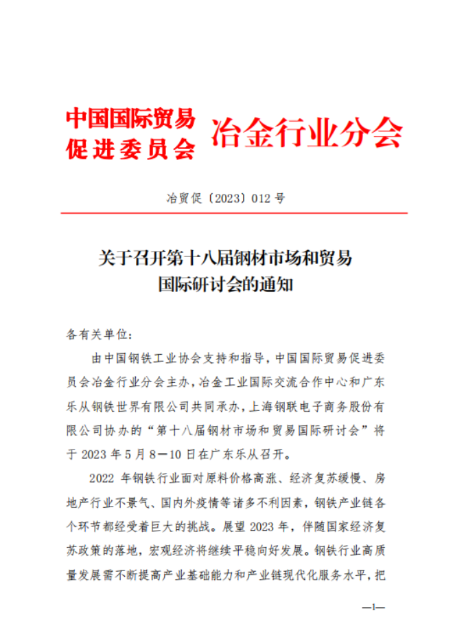 關於召開第十八屆鋼材市場和貿易國際研討會的通知