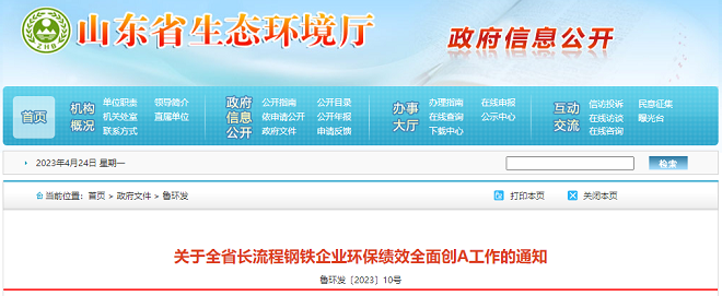 近日,山東省生態環境廳發布了《關於全省長流程鋼鐵企業環保績效全麵創A工作的通知》(以下簡稱《通知》)。