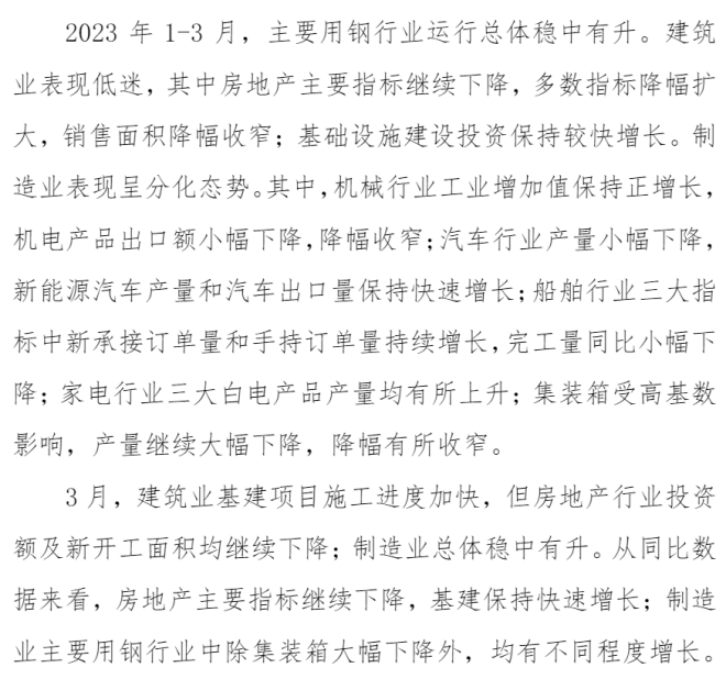 一季度主要用鋼行業運行總體穩中有升