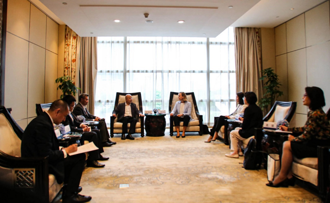 2023年6月13日,中國鋼鐵工業協會黨委書記、執行會長何文波在上海會見了FMG集團首席執行官菲奧娜•希克(Fiona Hick)一行。