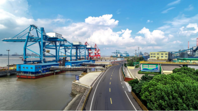 龍騰特鋼積極響應“雙碳”政策,在龍騰碼頭封閉大棚投資建設了23.5MW棚頂光伏項目,項目位於常熟龍騰特鋼樓頂,由6.8萬塊單晶光伏板拚接而成,麵積比“鳥巢”還大,是目前國內已知最大跨度的弧形BIPV項目。“把光伏板融入建築中,既達到超低排放,又能實現企業的低碳發展。”常熟龍騰特鋼外協辦主任袁燕介紹,該項目最大每年可提供約4850萬千瓦時清潔電力,每年可減少碳排放量約3.8萬噸。龍騰碼頭也成為全省首個“碳中和”碼頭,實現減汙降碳協同增效。據悉,該項目目前正在申報吉尼斯世界紀錄。