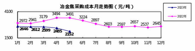 2023年5月“對標挖潛”企業主要原燃材料采購成本環比下降明顯