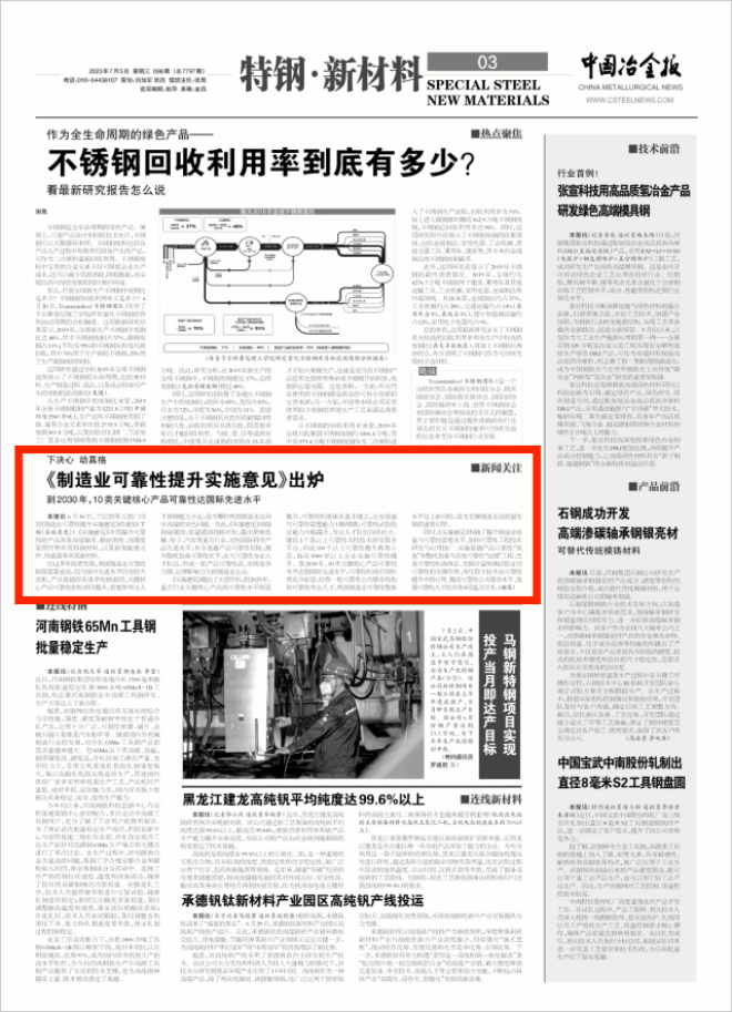 6月30日,工信部等五部門印發《製造業可靠性提升實施意見》的通知(下稱《實施意見》)。《實施意見》中需提升可靠性的產品涉及高端軸承、精密齒輪、高強度緊固件等所需特鋼材料,以及新型敏感元件、傳感器等所需新材料。