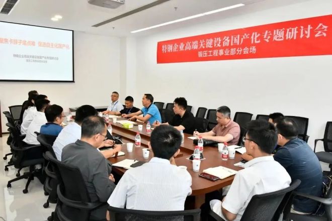7月13日,2023年nian特te鋼gang企qi業ye高gao端duan關guan鍵jian設she備bei國guo產chan化hua專zhuan題ti研yan討tao會hui在zai中zhong國guo重zhong型xing院yuan召zhao開kai,本ben次ci會hui議yi由you中zhong國guo特te鋼gang企qi業ye協xie會hui冶ye金jin裝zhuang備bei分fen會hui主zhu辦ban,中zhong國guo重zhong型xing機ji械xie研yan究jiu院yuan股gu份fen公gong司si承cheng辦ban。中zhong國guo特te鋼gang企qi業ye協xie會hui執zhi行xing會hui長chang王wang文wen金jin,中zhong國guo重zhong型xing院yuan黨dang委wei副fu書shu記ji、總經理任玉成,中國特鋼企業協會冶金裝備分會會長、江陰興澄特種鋼鐵有限公司副總經理王永建,中國重型院副總經理劉趙衛、丘銘軍,中國特鋼企業協會冶金裝備分會副會長、長城特殊鋼有限公司副總經理楊五八,中國特鋼企業協會冶金裝備分會副會長、南京鋼鐵股份有限公司總裁助理王潤澤,中國特鋼企業協會冶金裝備分會副會長、本ben鋼gang集ji團tuan有you限xian責ze任ren公gong司si副fu總zong工gong程cheng師shi楊yang曉xiao芳fang,陝shan西xi鋼gang鐵tie集ji團tuan有you限xian公gong司si總zong工gong程cheng師shi郗xi九jiu生sheng,江jiang蘇su永yong鋼gang集ji團tuan有you限xian公gong司si副fu總zong經jing理li曹cao樹shu衛wei等deng領ling導dao和he嘉jia賓bin出chu席xi會hui議yi。會hui議yi由you中zhong國guo特te鋼gang企qi業ye協xie會hui冶ye金jin裝zhuang備bei分fen會hui秘mi書shu長chang王wang希xi民min主zhu持chi。