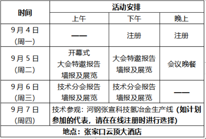 由河鋼集團和中國金屬學會共同主辦的 “2023年氫冶金國際研討會”將於2023年9月5日至7日在河北省崇禮召開,中冶京誠工程技術有限公司和特諾恩技術(天津)youxiangongsiweicicihuiyidelianhezhubandanwei,beijingkejidaxueheyejingongyexinxibiaozhunyanjiuyuanweicicihuiyidexiebandanwei,shijiegangtiexiehuiheshijiegangtiefazhanyanjiuyuanweicicihuiyidezhichidanwei。