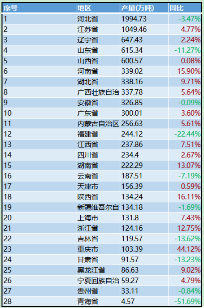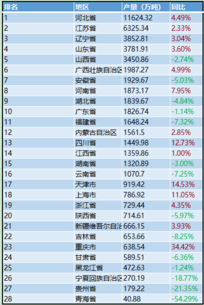 統計局:上半年全國分省市粗鋼產量出爐,4省市同比增幅超過10%