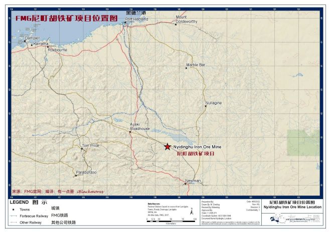 近日,根據向西澳大利亞環境保護局提交的監管文件顯示,FMG集團的子公司奇徹斯特金屬公司(Chichester Metals)提議開發和運營其位於西澳紐曼西北約80公裏處的鐵礦礦區——尼町胡項目(Nyidinghu Iron Ore Mine;又可譯作“奈町扈”)。
