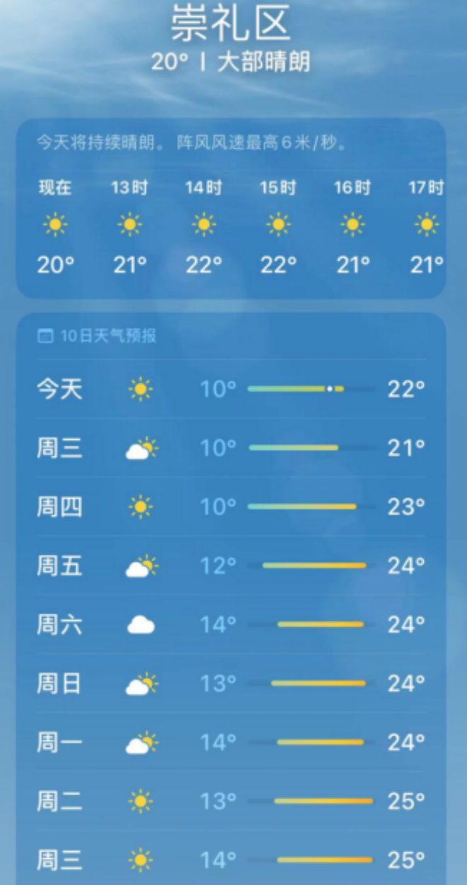 7、9月初崇禮晝夜溫差較大,請您及時查詢當地實時天氣狀況,備好衣物。