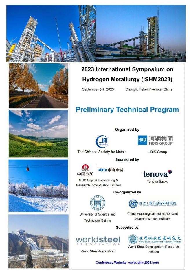 由中國金屬學會和河鋼集團共同主辦的 “2023年氫冶金國際研討會”將於2023年9月5日至7日在河北省崇禮召開,本屆會議組委會收到了來自澳大利亞、奧地利、比利時、巴西、加拿大、德國、日本、韓國、瑞典、英國、中國等11個國家及地區的著名專家學者和科研人員的論文110餘篇(其中國外論文30餘篇)。經過技術委員會討論,現通知此次會議的技術日程。