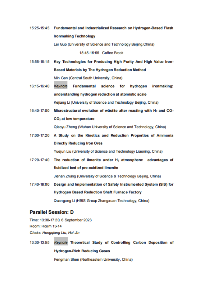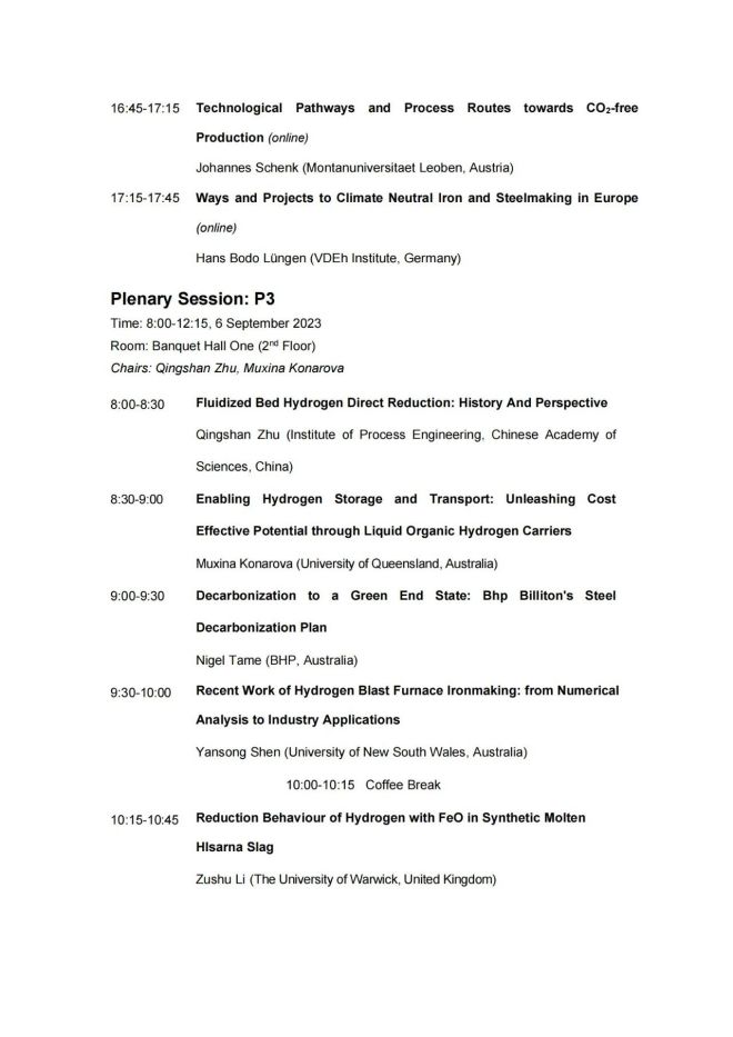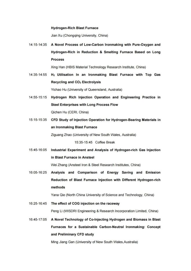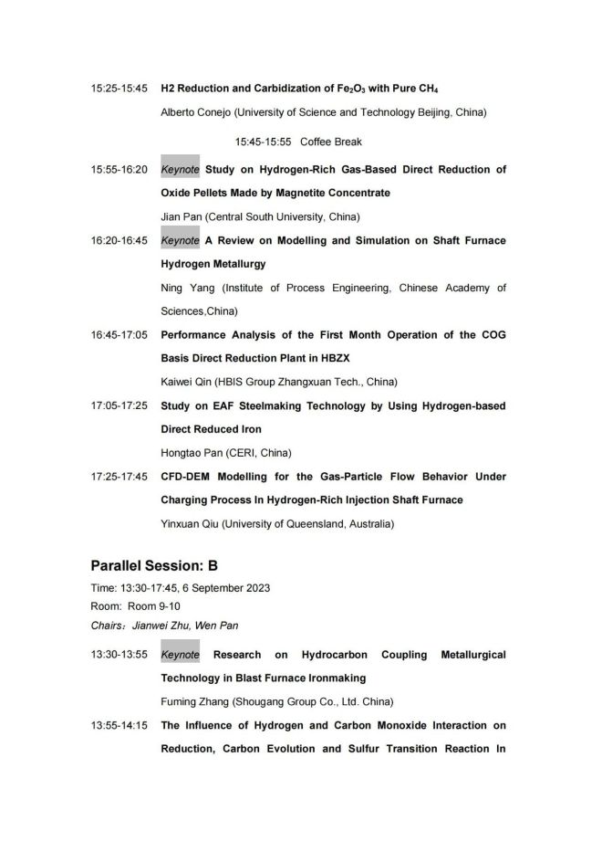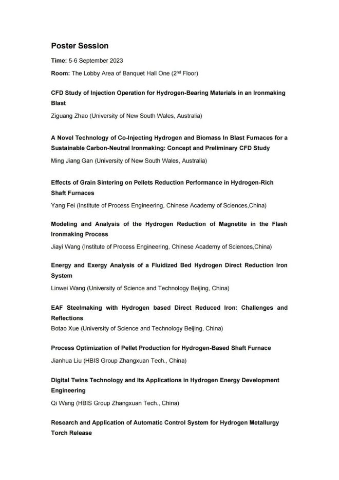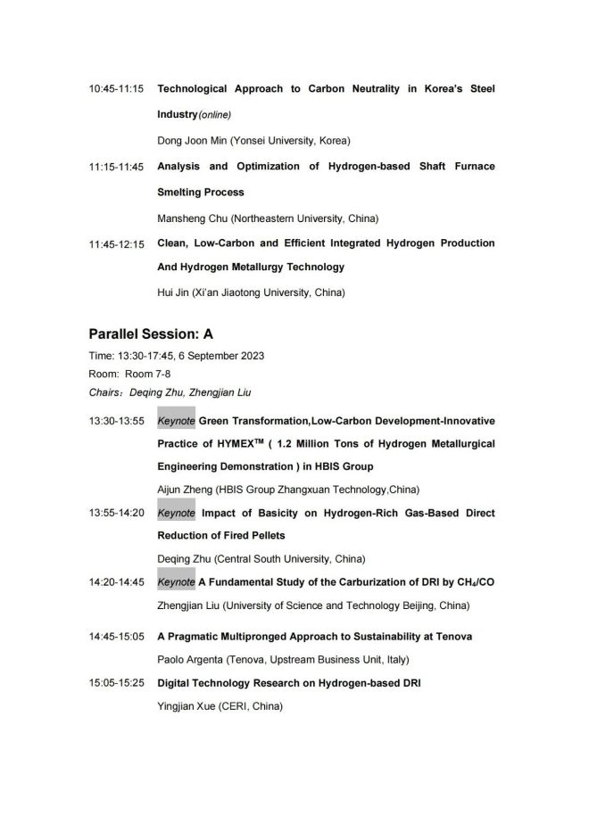 技術日程 | 2023年氫冶金國際研討會