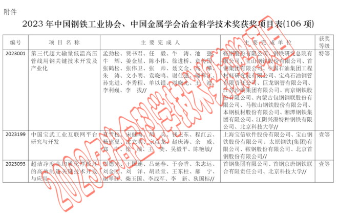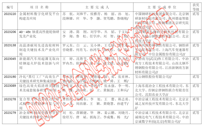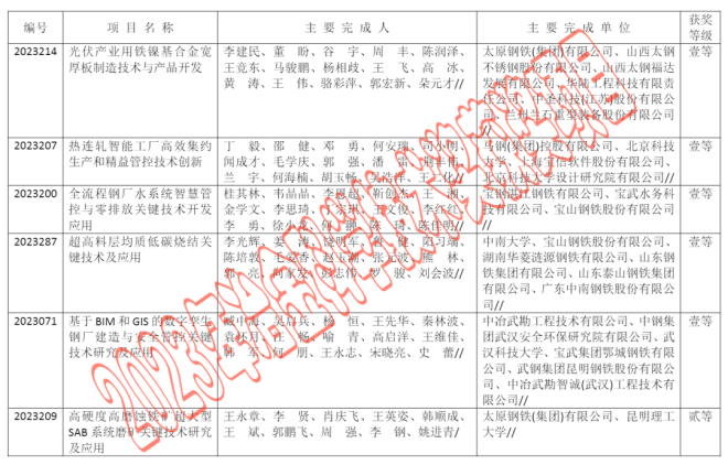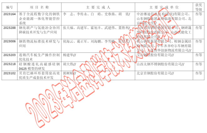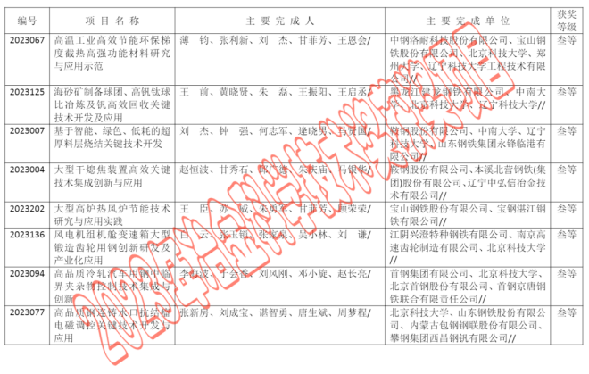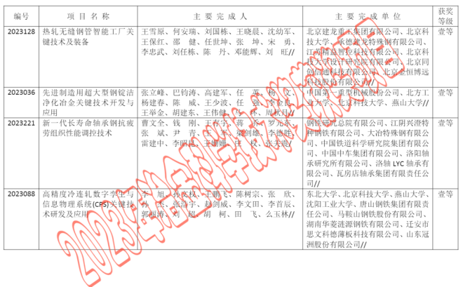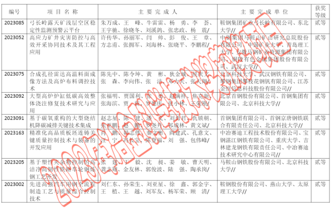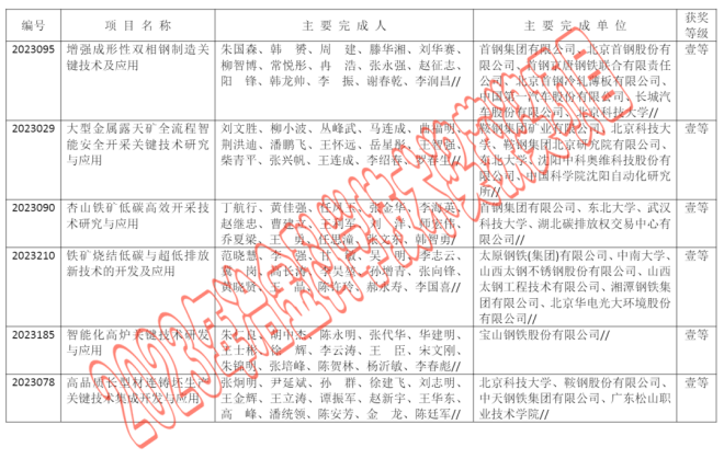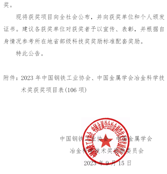 2023年中國鋼鐵工業協會、中國金屬學會冶金科學技術獎公告