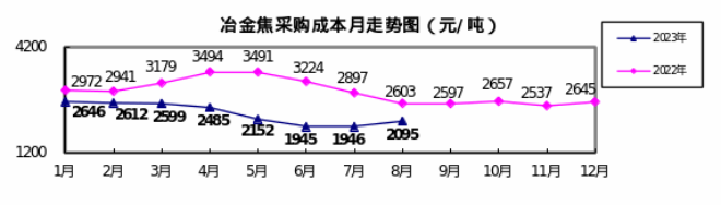2023年8月“對標挖潛”企業焦煤、冶金焦采購成本環比升幅較大