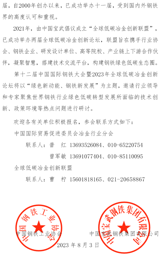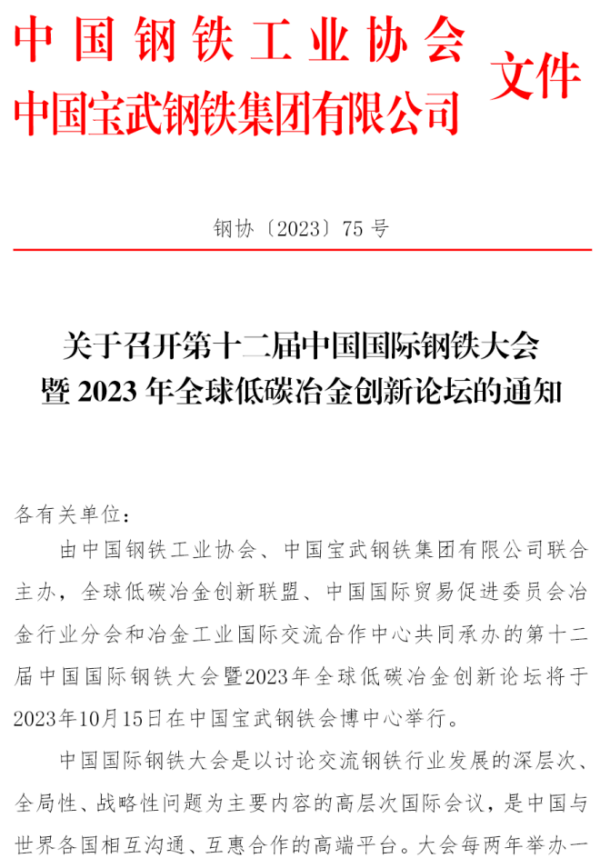 最新議程 | 第十二屆中國國際鋼鐵大會暨2023年全球低碳冶金創新論壇10月份即將召開
