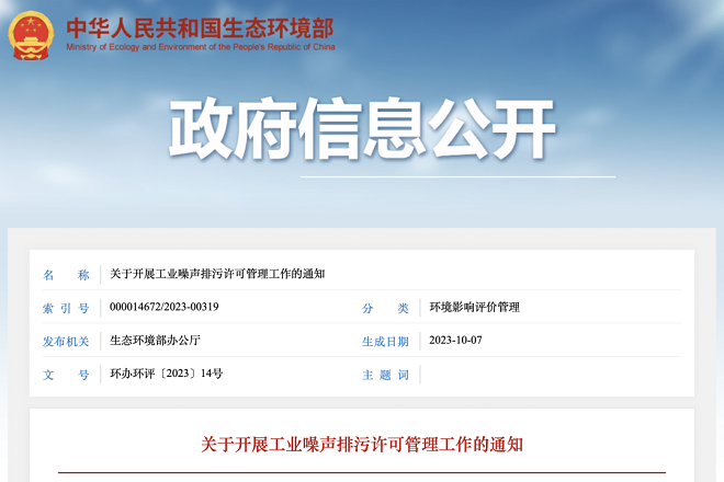 近日,生態環境部網站印發了《關於開展工業噪聲排汙許可管理工作的通知》(以下簡稱《通知》),重點提出了推動落實工業噪聲納入排汙許可管理的具體措施。