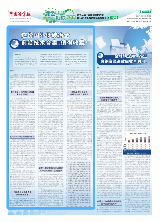 國際鋼鐵大會專題報道|這份國外低碳冶金前沿技術合集,值得收藏