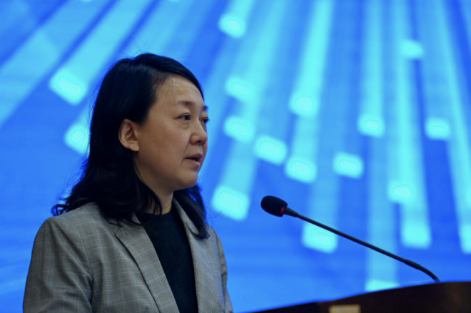 圖為中宣部傳媒監管局副局長、一級巡視員段玉萍出席並致辭。