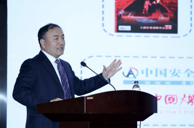 圖為中國應急管理報社黨委書記崔濤作主題演講。