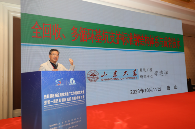 李連祥主題報告:《全回收、多循環基坑支護標準鋼結構體係成套技術》。