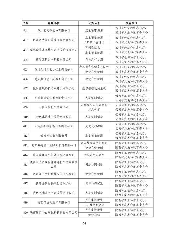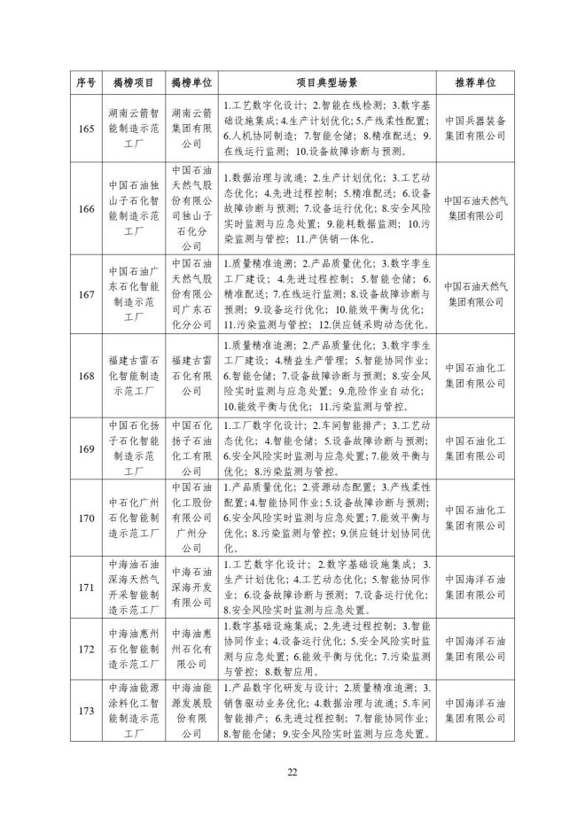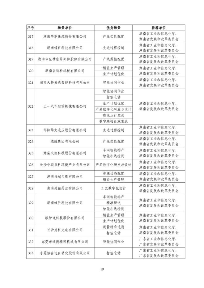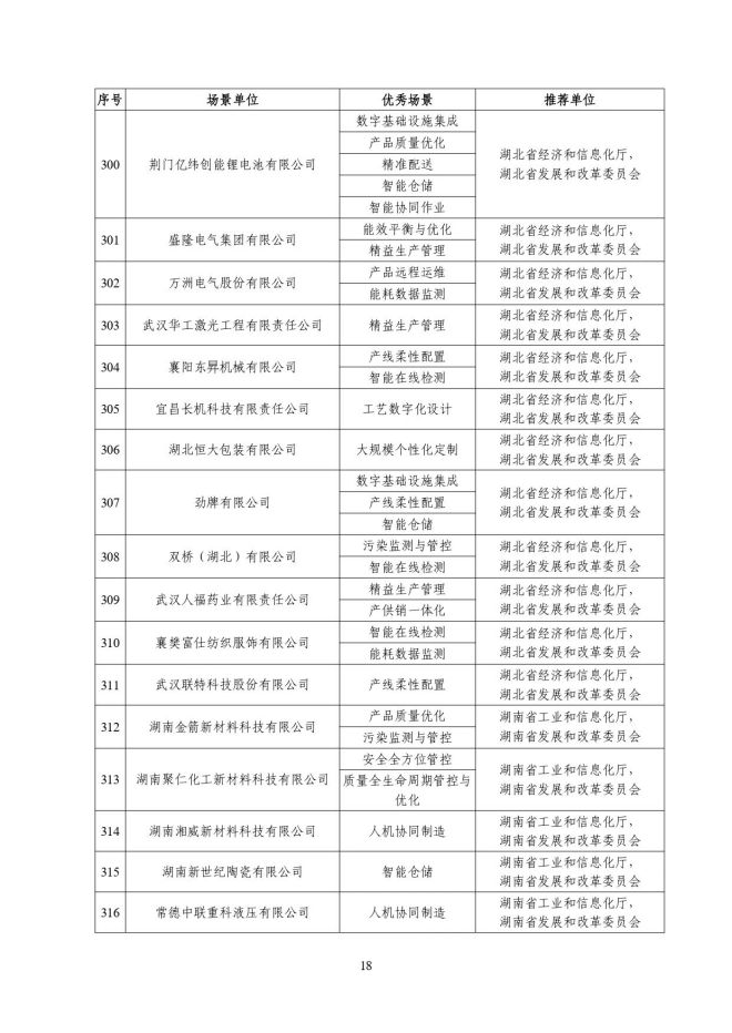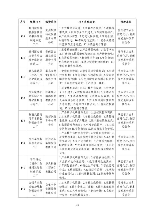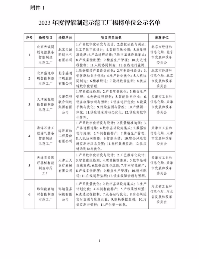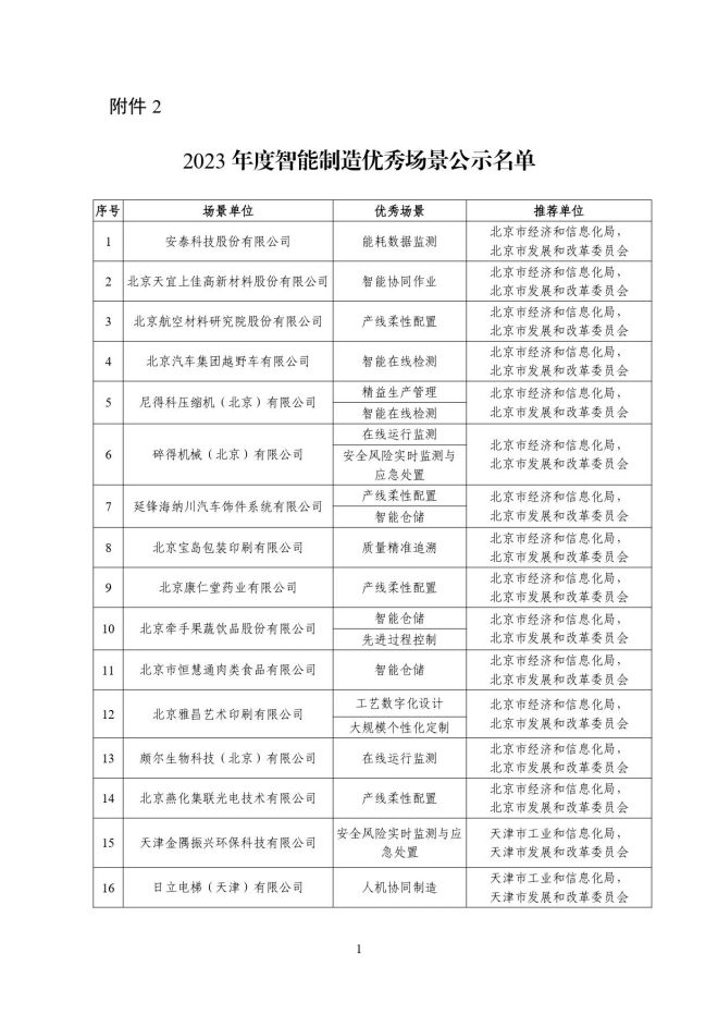 根據《關於開展2023年度智能製造試點示範行動的通知》(工信廳聯通裝函〔2023〕212號),近日,工信部將擬入選的2023年度智能製造示範工廠揭榜單位和優秀場景名單進行公示,名單如下: