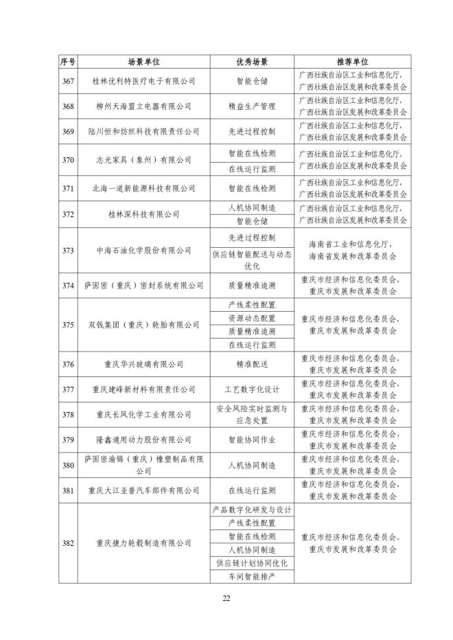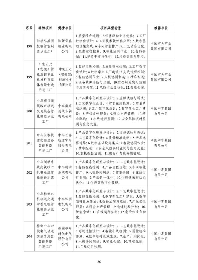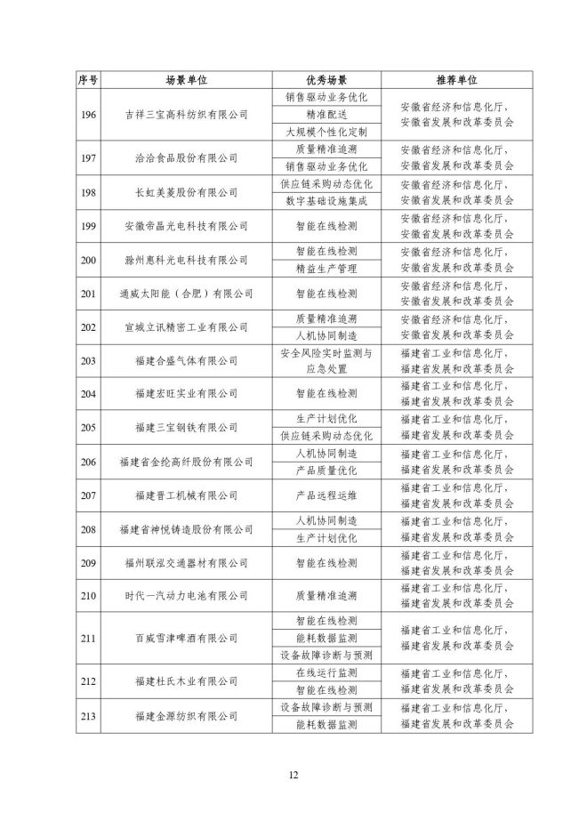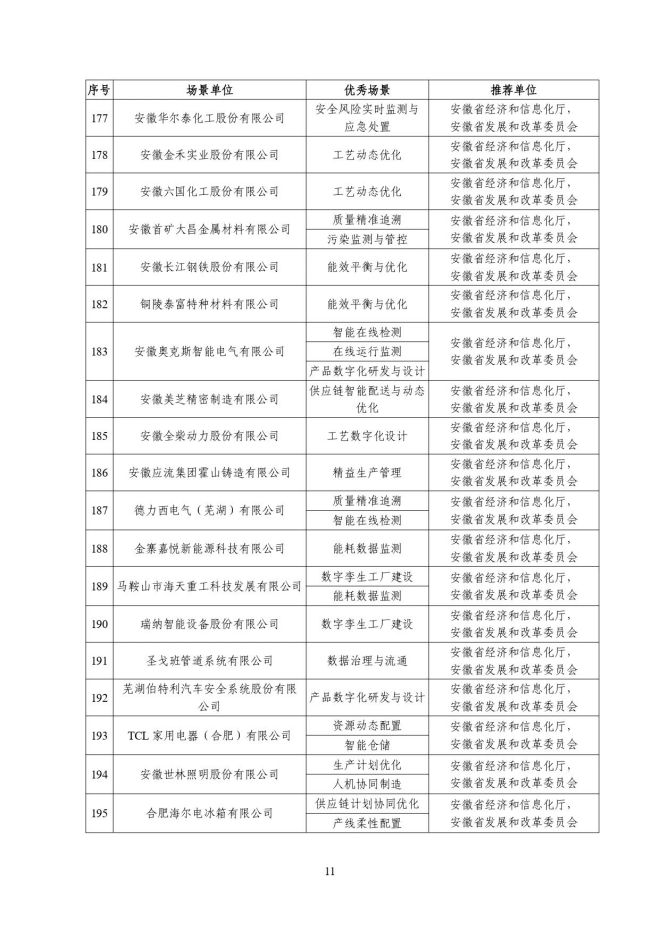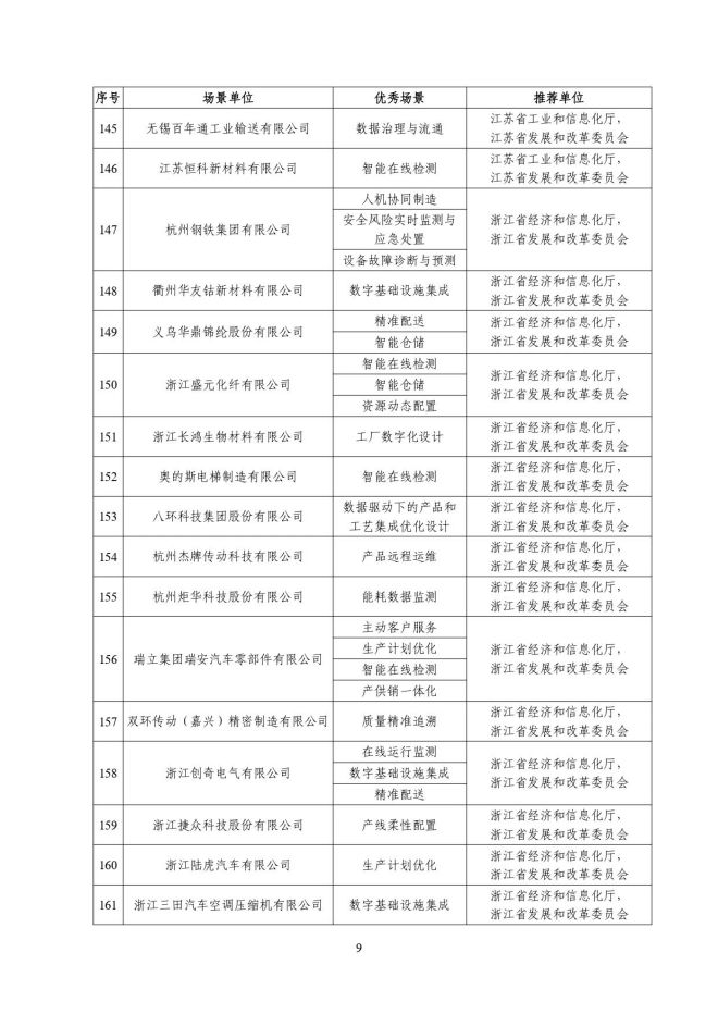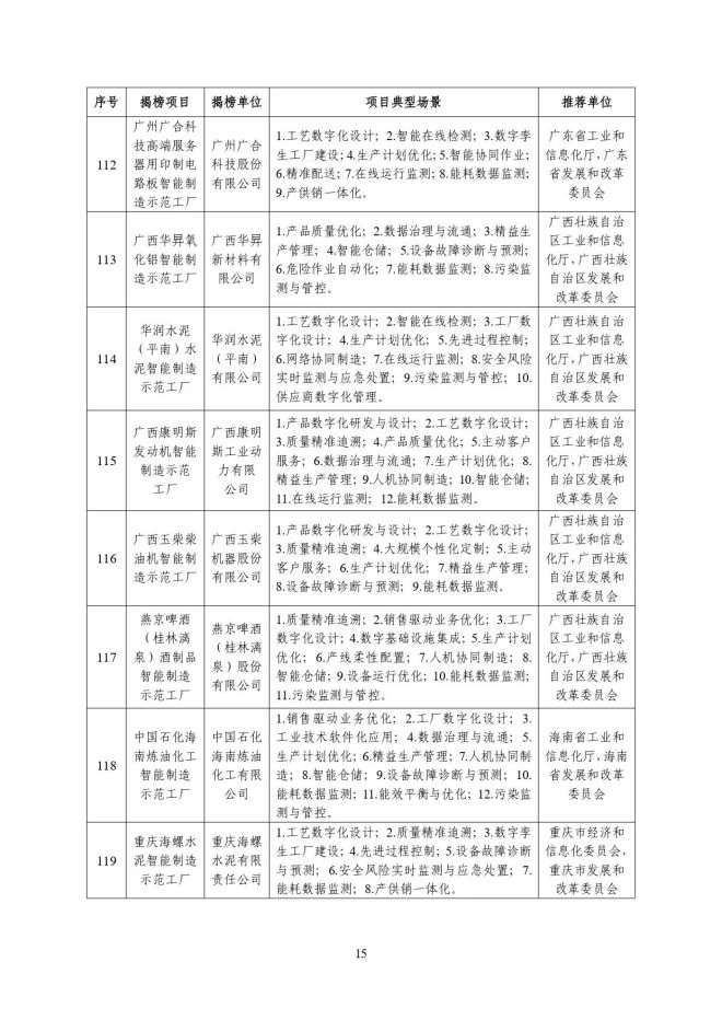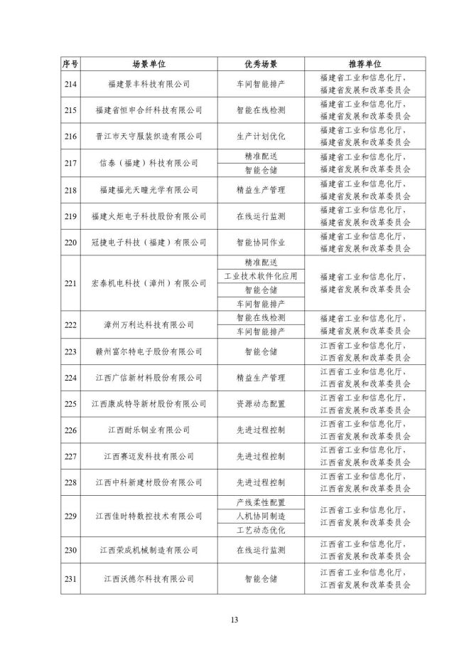 根據《關於開展2023年度智能製造試點示範行動的通知》(工信廳聯通裝函〔2023〕212號),近日,工信部將擬入選的2023年度智能製造示範工廠揭榜單位和優秀場景名單進行公示,名單如下: