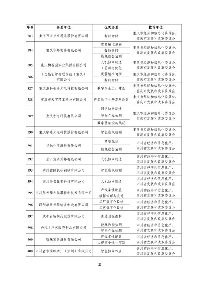 2023年度智能製造示範工廠揭榜單位和優秀場景公示