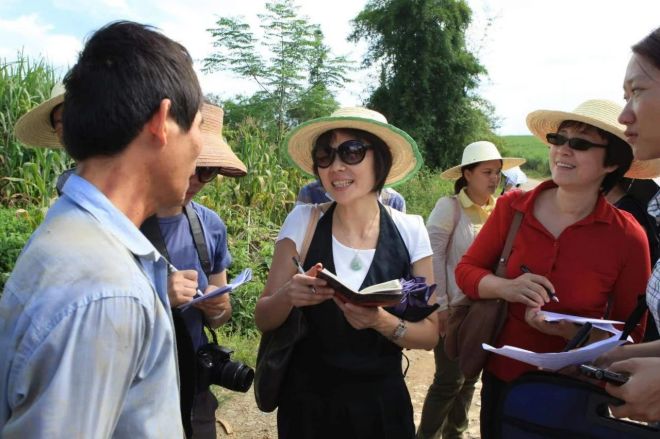 2012年,雲南日報報業集團熊燕(左三)在臨滄市雙江拉祜族佤族布朗族傣族自治縣采訪。