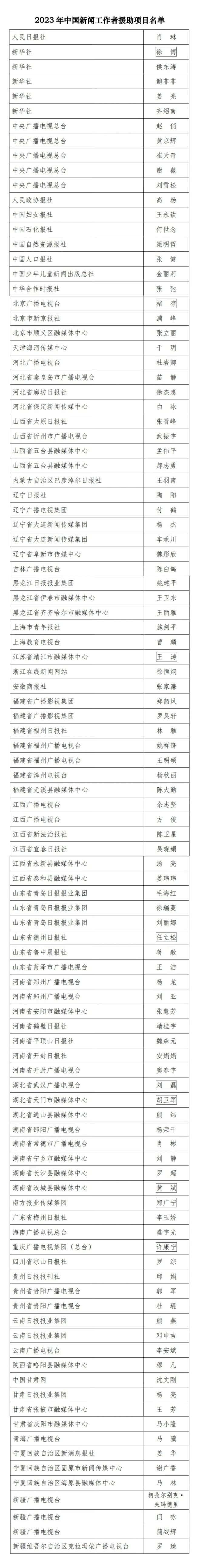 11月4日,中國記協發布2023年中國新聞工作者援助項目援助名單和金額,來自10家中央新聞單位、29個省(自治區、直轄市)的73家地方新聞單位共103名新聞工作者獲援助金432萬元。