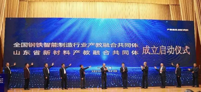 為(wei)全(quan)麵(mian)貫(guan)徹(che)落(luo)實(shi)中(zhong)央(yang)關(guan)於(yu)深(shen)化(hua)現(xian)代(dai)職(zhi)業(ye)教(jiao)育(yu)體(ti)係(xi)建(jian)設(she)改(gai)革(ge)的(de)有(you)關(guan)要(yao)求(qiu),彙(hui)聚(ju)行(xing)業(ye)產(chan)教(jiao)資(zi)源(yuan),探(tan)索(suo)跨(kua)區(qu)域(yu)產(chan)教(jiao)融(rong)合(he)新(xin)途(tu)徑(jing),賦(fu)能(neng)綠(lv)色(se)低(di)碳(tan)高(gao)質(zhi)量(liang)發(fa)展(zhan),推(tui)動(dong)現(xian)代(dai)職(zhi)業(ye)教(jiao)育(yu)體(ti)係(xi)新(xin)模(mo)式(shi)試(shi)點(dian)工(gong)作(zuo),在(zai)中(zhong)國(guo)鋼(gang)鐵(tie)工(gong)業(ye)協(xie)會(hui)指(zhi)導(dao)下(xia),山(shan)東(dong)工(gong)業(ye)職(zhi)業(ye)學(xue)院(yuan)聯(lian)合(he)山(shan)東(dong)鋼(gang)鐵(tie)集(ji)團(tuan)有(you)限(xian)公(gong)司(si)、東北大學、河北工業職業技術大學,於10月21日順利召開“全國鋼鐵智能製造行業產教融合共同體”成立大會。