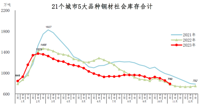 11月上旬鋼材社會庫存792萬噸 環比下降7.6%
