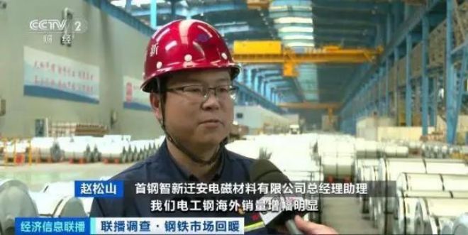 首鋼智新遷安電磁材料有限公司總經理助理 趙鬆山:電工鋼海外銷量增幅明顯,為開拓全球市場,我們持續進行全球化的布局。推進高端產品在海外市場的認證,包括銷售。