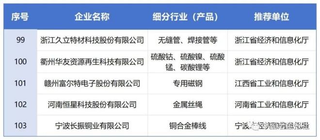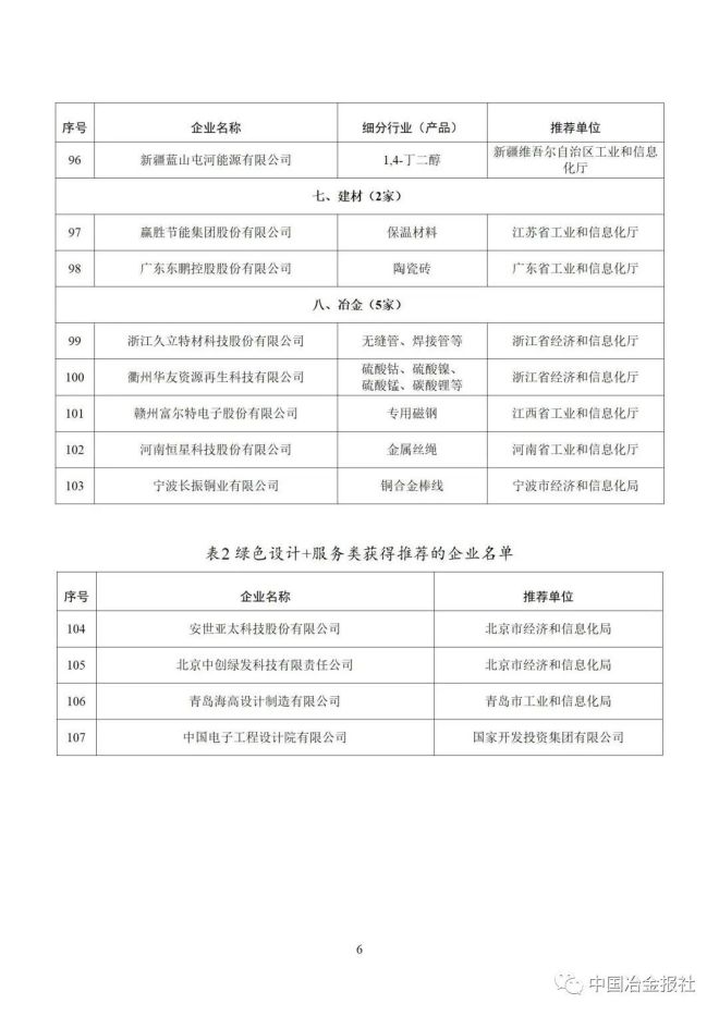 11月27日,工業和信息化部網站發布通知,公布工業產品綠色設計示範企業名單(第五批)。其中,冶金領域有5家企業上榜,名單如下: