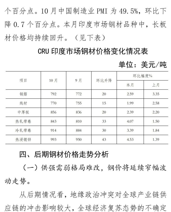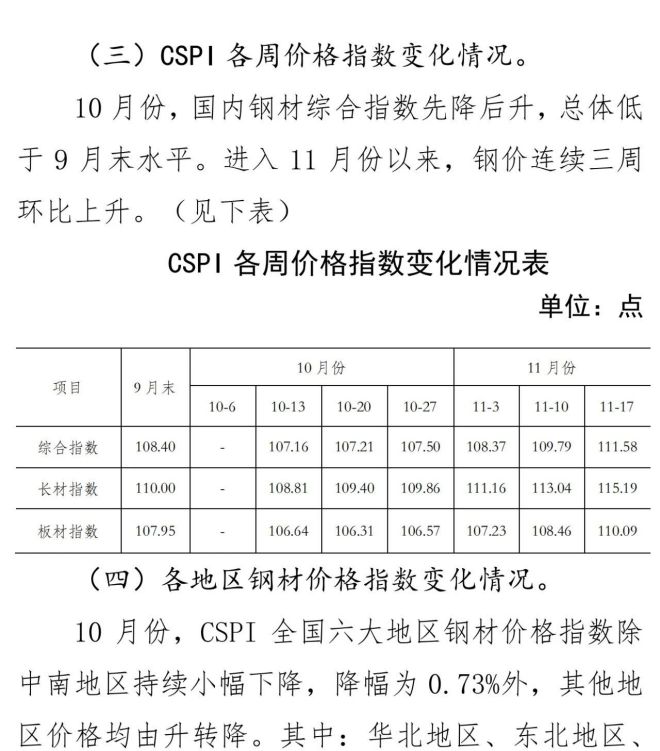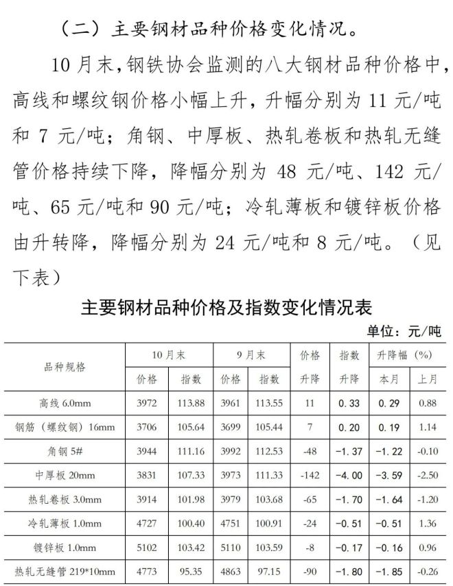 10月份國內市場鋼材價格小幅下降 11月以來止跌回升