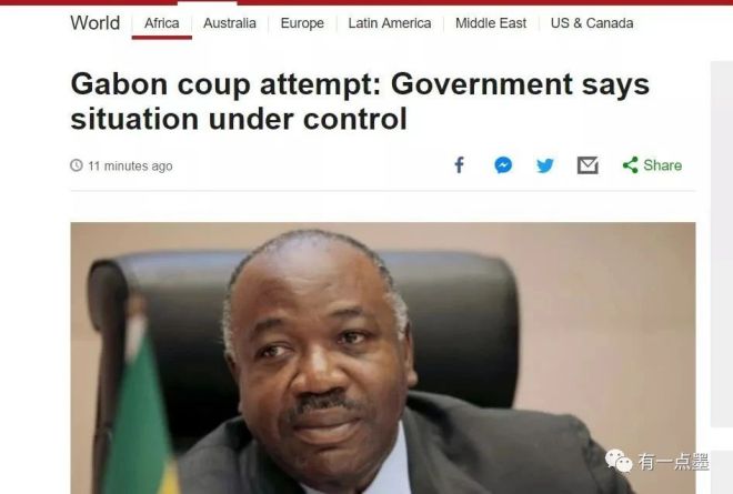 不過就在8月份,加蓬舉行七年來的首次大選。8月30日淩晨,加蓬選舉中心剛剛公布已經擔任14年總統的阿裏·邦戈將繼續連任之後,曾經長期忠於邦戈的加蓬軍方便迅速發動政變、軟禁邦戈、解散國家機關、接管國家政權。